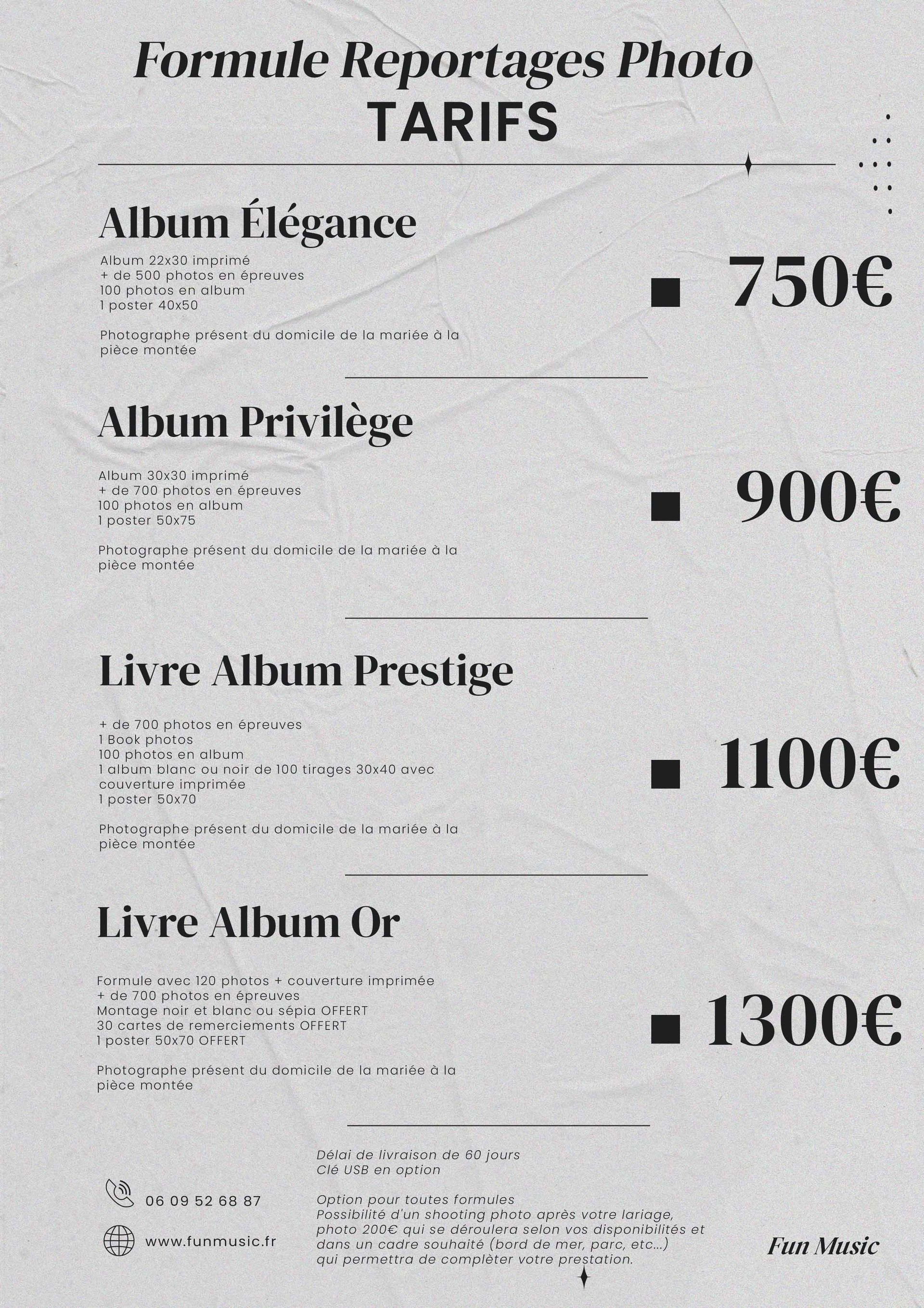 Nous proposons des forfaits de photographe mariage qui s'adaptent à tous les budgets. Nos photographe tarifs sont conçus pour offrir une qualité exceptionnelle sans compromis. Chaque forfait inclut un service personnalisé pour répondre à vos besoins spécifiques.